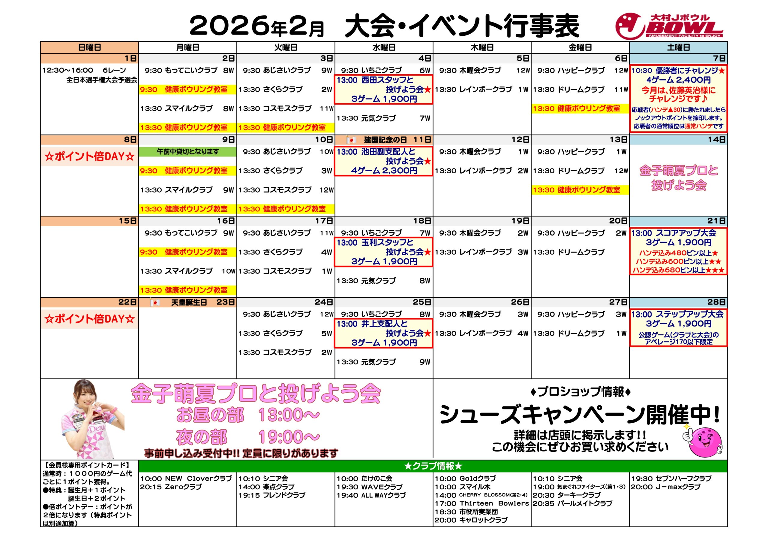 2026年2月大会・イベント行事表